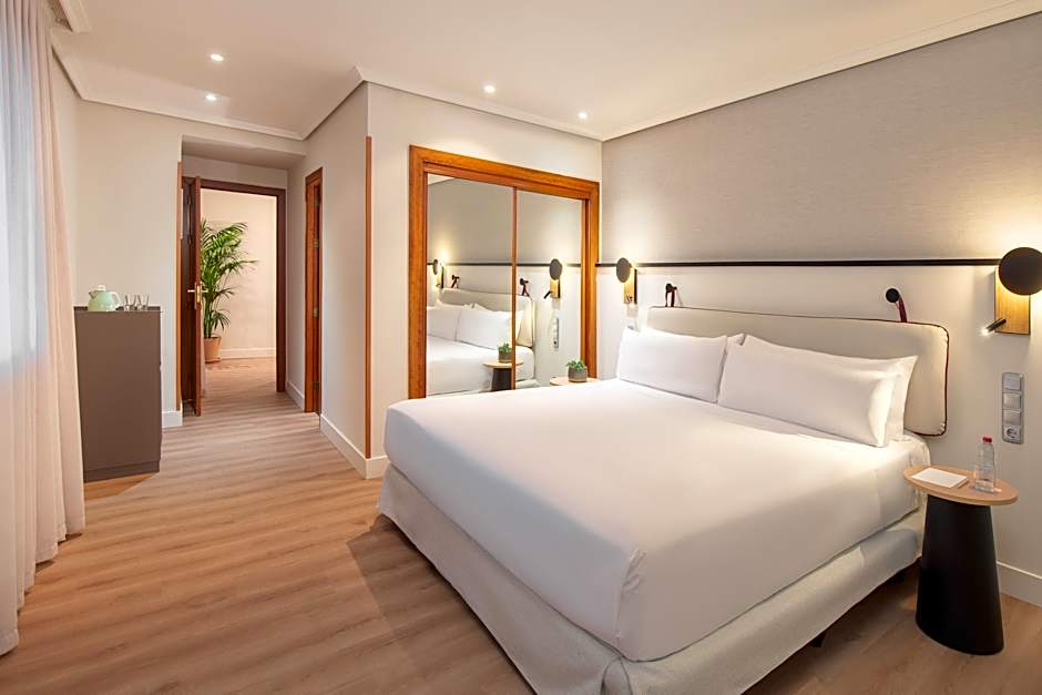 This spacious suite includes 3 separate spaces, including a large bedroom, modern lounge and large terrace with views over the peaceful park. It also features a private bathroom with hydromassage tub. Free Wi-Fi available.